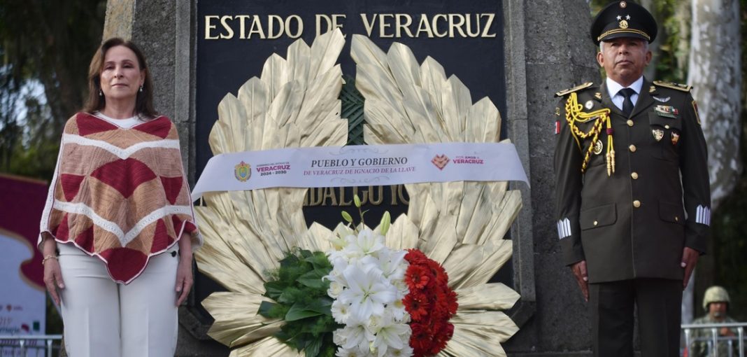 Xalapa, Ver., martes 16 de septiembre de 2025.- En la conmemoración del 215 aniversario de la Independencia de México, la gobernadora Rocío Nahle García montó guardia de honor ante el monumento a Miguel Hidalgo y Costilla, subrayando que el espíritu de aquella gesta histórica permanece vigente en la Cuarta Transformación que encabeza la presidenta Claudia Sheinbaum Pardo.