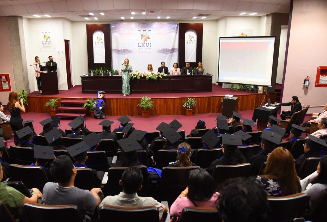 La diputada Ana Miriam Ferráez Centeno recibió en el auditorio Sebastián Lerdo de Tejada del Palacio Legislativo a las y los estudiantes egresados de la escuela primara Avelino Bolaños de esta ciudad, generación 2017-2023.