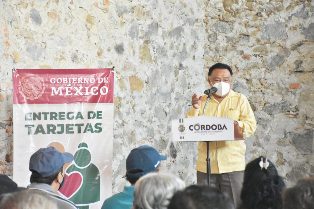 Córdoba, Ver., (30 de junio de 2022).- El Presidente de Córdoba, Juan Martínez Flores acompañó este día al Delegado de Programas para el Desarrollo en el estado, Manuel Huerta Ladrón de Guevara, a la entrega de 800 tarjetas a cordobesas y cordobeses, derivado del programa «Pensión para el Bienestar de las Personas Adultas Mayores» que se llevó a cabo en las instalaciones de la Ex Hacienda San Francisco Toxpan.