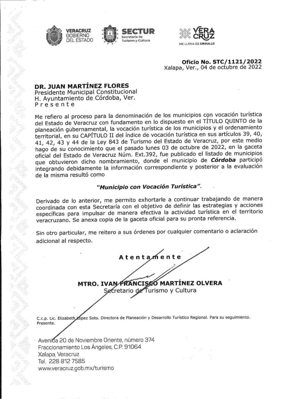 Córdoba, Ver., (08 de octubre de 2022). – Como parte de los beneficios que tendrá Córdoba al ser ingresado por Decreto a la lista de Municipios con Vocación Turística por parte de la Secretaría de Turismo y Cultura (Sectur), podrá acceder a los diversos programas federales y estatales que le permitan a la ciudad seguir creciendo en infraestructura, potencializando así las virtudes turísticas del municipio, indicó el Regidor sexto, Sergio Armando de la Llave Migoni, presidente de la comisión de Turismo del Ayuntamiento de Córdoba.