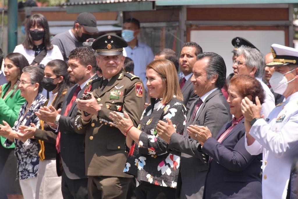 Posteriormente, se trasladó al parque Benito Juárez, de la ciudad de Xalapa, para participar de la Ceremonia Conmemorativa por la Batalla de Puebla “Defensa de la Patria”, al final de la cual se dijo orgullosa de la Nación por la que muchos mexicanos han ofrendado su vida.