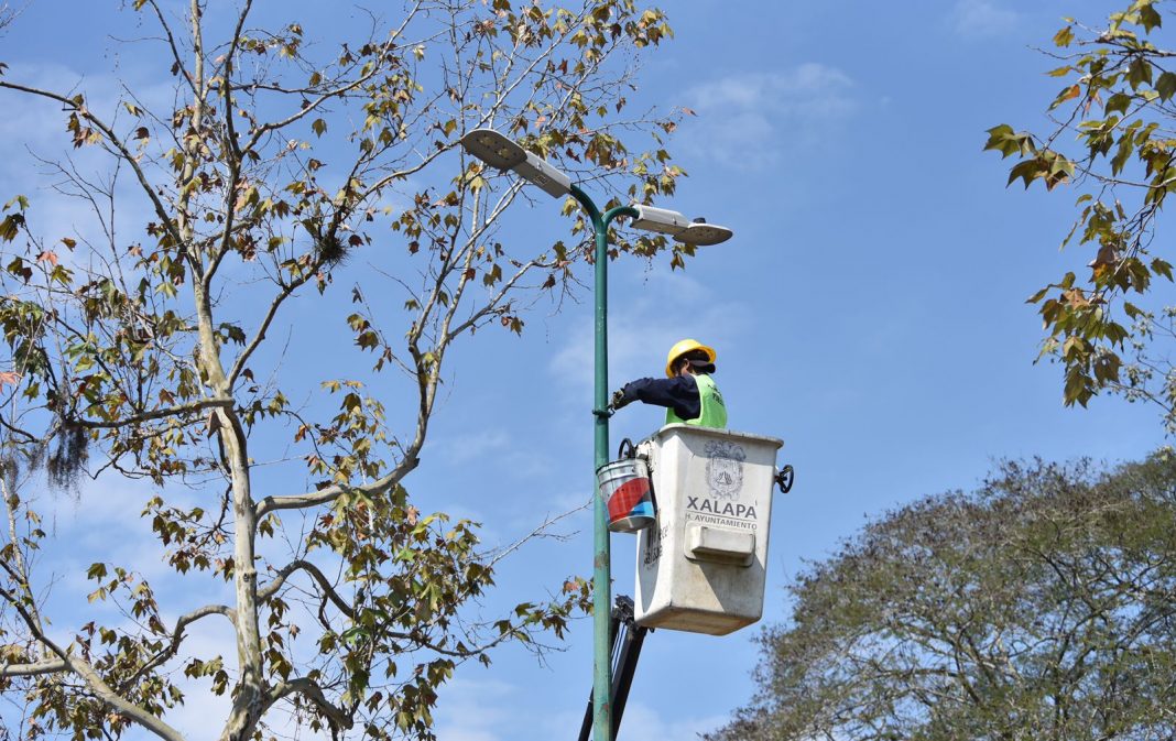 Xalapa, Ver.- Con el propósito de ofrecer seguridad a la población de Xalapa, prevenir accidentes y mejorar la imagen urbana, personal de la Subdirección de Gestión Energía del Ayuntamiento de Xalapa realiza acciones de mantenimiento en infraestructura y postes de la red de alumbrado público en distintos puntos del municipio.