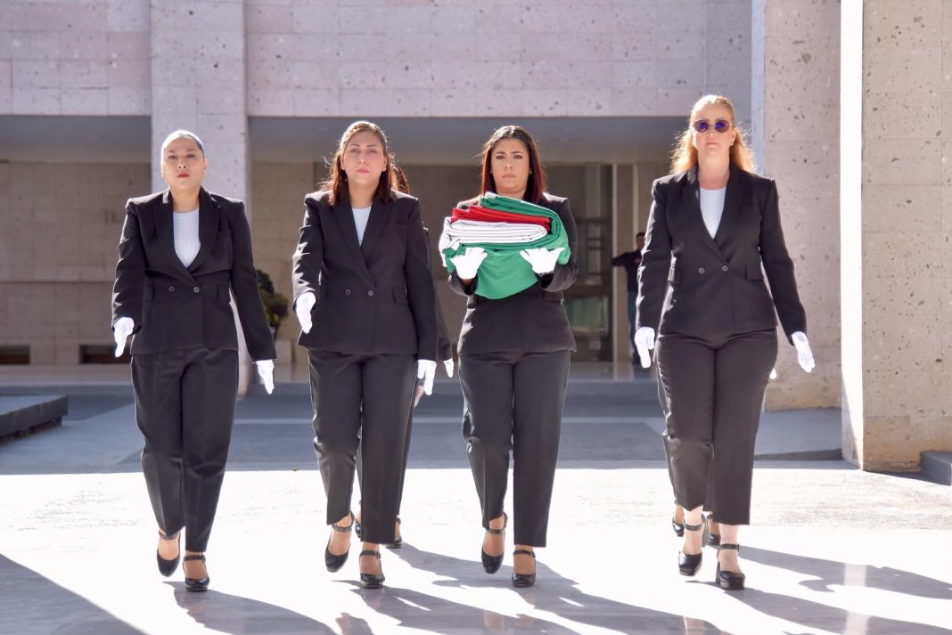 Tras los honores respectivos, el izamiento del lábaro patrio y la entonación del Himno Nacional Mexicano por parte de los presentes, el secretario de Servicios Administrativos y Financieros de este Congreso, Alfredo Alberto Martínez Gómez, hizo uso de la palabra.