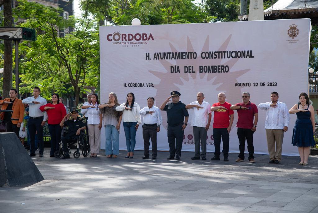 Córdoba, Ver., (22 de agosto de 2023).- En reconocimiento a su labor humanitaria, autoridades municipales e integrantes del Cabildo encabezados por el Presidente Juan Martínez Flores se realizó un acto cívico en conmemoración al Día del Bombero.