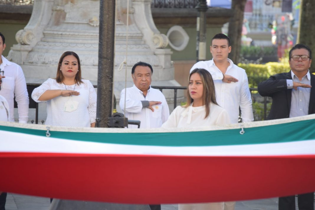 Posteriormente, la alumna Vania Ximena Medina Hernández, se encargó del juramento a la Bandera, para dar paso a entonar el Himno Nacional y el de Veracruz, acompañados por la Banda de Música Municipal.