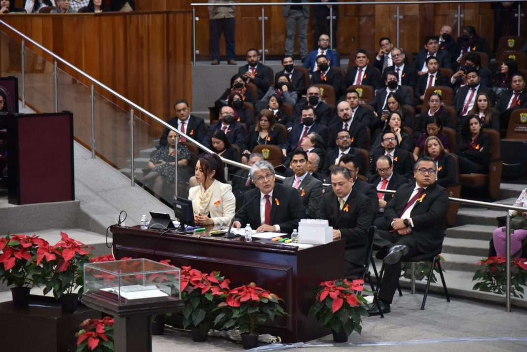 En presencia de las diputadas Magaly Armenta Oliveros e Itzel López López, presidenta y vocal de la Comisión Permanente de Bienestar y Desarrollo Social, respectivamente, en el Recinto Oficial de Sesiones del Palacio Legislativo, el funcionario presentó y desarrolló los avances de la administración pública en esta materia durante el ejercicio 2022.