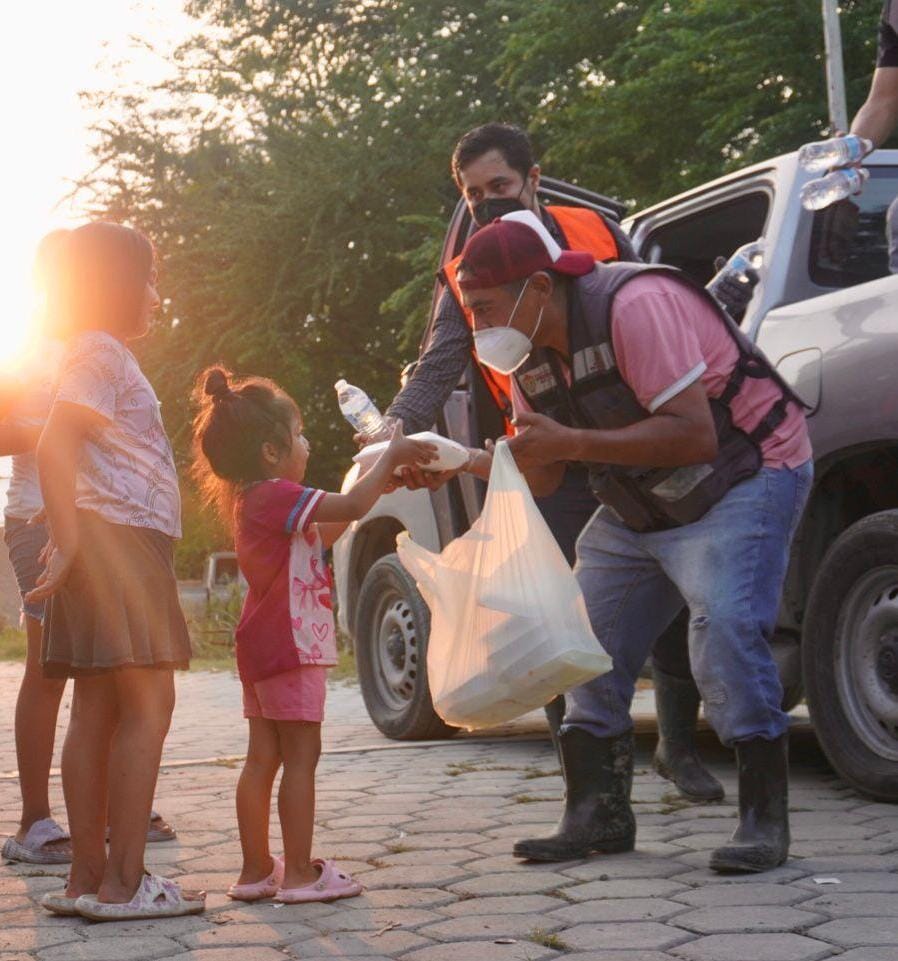 En Álamo, uno de los municipios con mayores afectaciones, continúan las labores de entrega de insumos básicos, agua y comidas calientes preparadas, así como la supervisión de albergues donde se resguarda a quienes tuvieron que dejar sus viviendas.