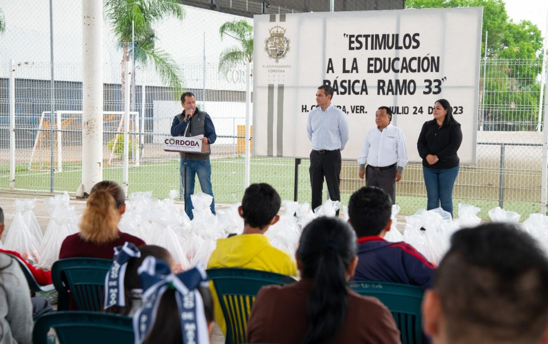 Córdoba, Ver., (24 de julio de 2023). – Autoridades municipales encabezadas por el Presidente, Juan Martínez Flores realizaron la dispersión del pago correspondiente a “Estímulos a la Educación Básica, Ramo 33”, que beneficiará a 400 estudiantes de 61 planteles educativos de Córdoba de nivel primaria y secundaria.