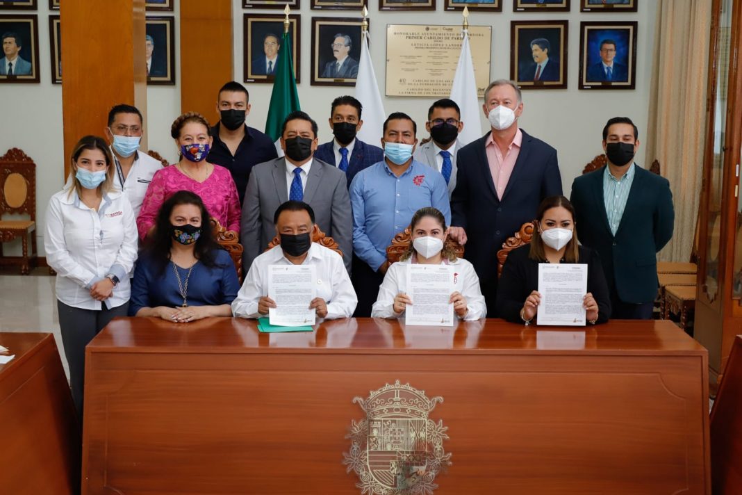 A esta firma de convenio estuvieron presentes el Regidor primero, Daniel Vázquez Hernández; la Regidora tercera, Georgina Aguilar Sánchez y el Regidor quinto, Jonathan Francisco Rosas Blanco.