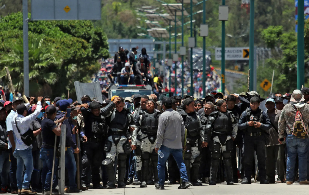 La jornada violenta del fin de semana, que dejó cinco transportistas muertos, y la detención de dos de integrantes del grupo delictivo, continuó este lunes con una marcha de más de 2 mil personas, quienes tomaron por un momento las sedes estatales del poder Ejecutivo y Legislativo, además de la delegación de la Fiscalía General de la República (FGR), ante una política de “no represión” del Gobierno estatal.