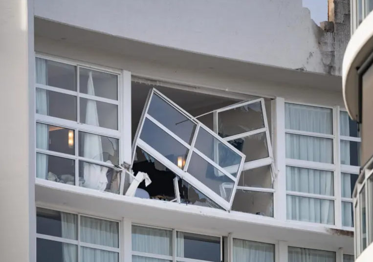 “Luego miramos hacia arriba y vimos un enorme agujero en la ventana del edificio”, explicó Salmon, mientras su compañero de habitación Harry Holberton acotó que al ir a recoger sus cosas vio “escombros por todo el hotel”.