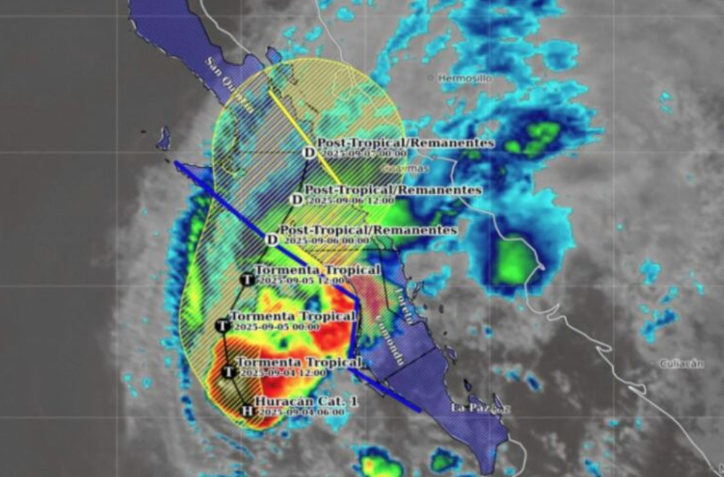 El Servicio Meteorológico Nacional (SMN) informó que la mañana del jueves 4 de septiembre de 2025 “Lorena” se mantiene como huracán categoría 1 en la escala Saffir-Simpson.