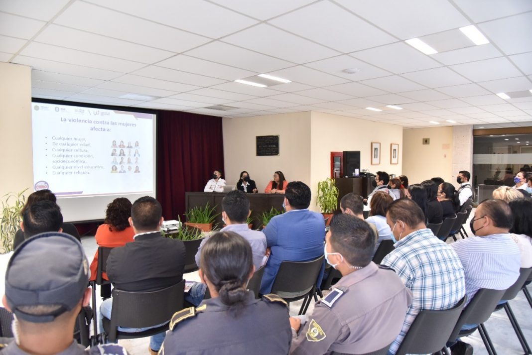 A la sala Irene Bourell Peralta del Palacio Legislativo acudieron la encargada del CEIGDH, Arhely Cuesta Briones, jefes de departamento y personal administrativo, para escuchar las ponencias de Amira Yasvhé Báez Sangabriel, de la Unidad de Género de la SSP, y de Javier de Jesús Palmeros Acuña y Adnaloy Moreno Álvarez, de la