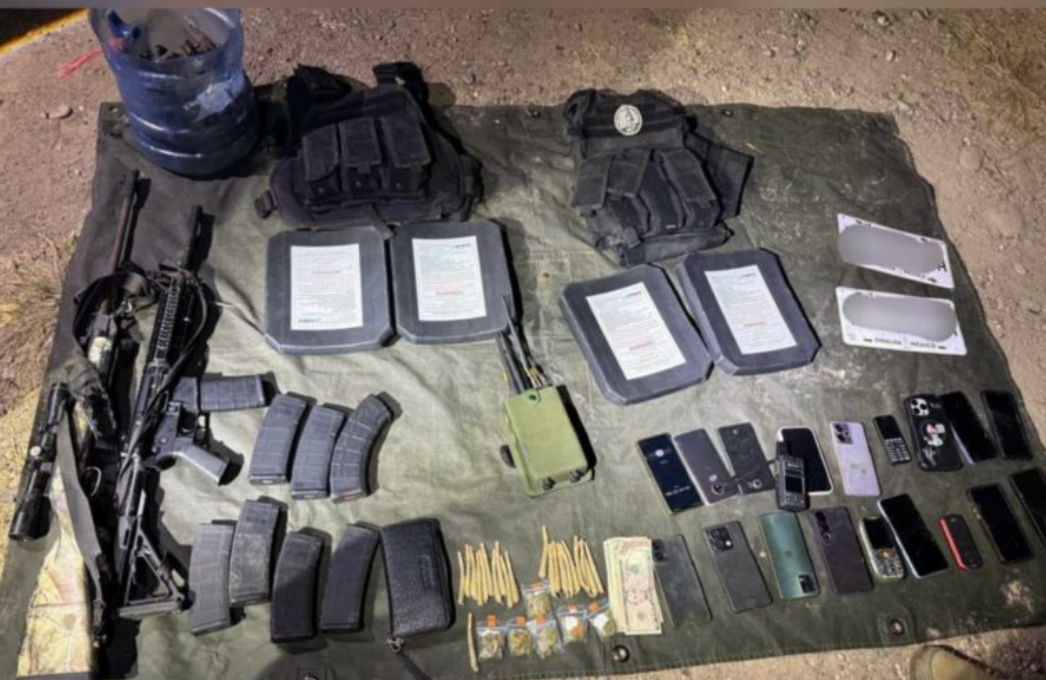También mencionó que al interior de este inmueble se decomisó un arma larga tipo AR-15, un rifle de postas, ocho cargadores, 90 cartuchos, un inhibidor de señales de 12 antenas, dos chalecos tácticos con dos placas balísticas cada uno.