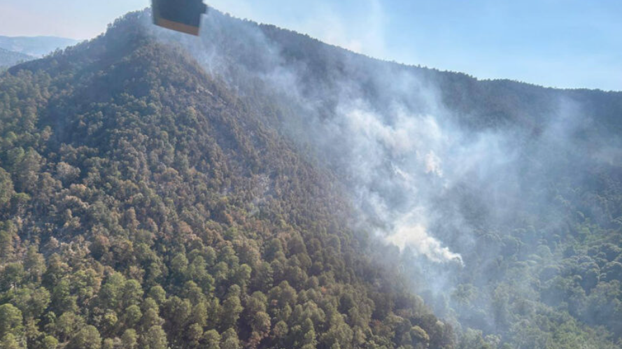 La Secretaría de Seguridad Pública (SSP) de Michoacán desplegó un helicóptero para descargas de agua en las líneas de control.