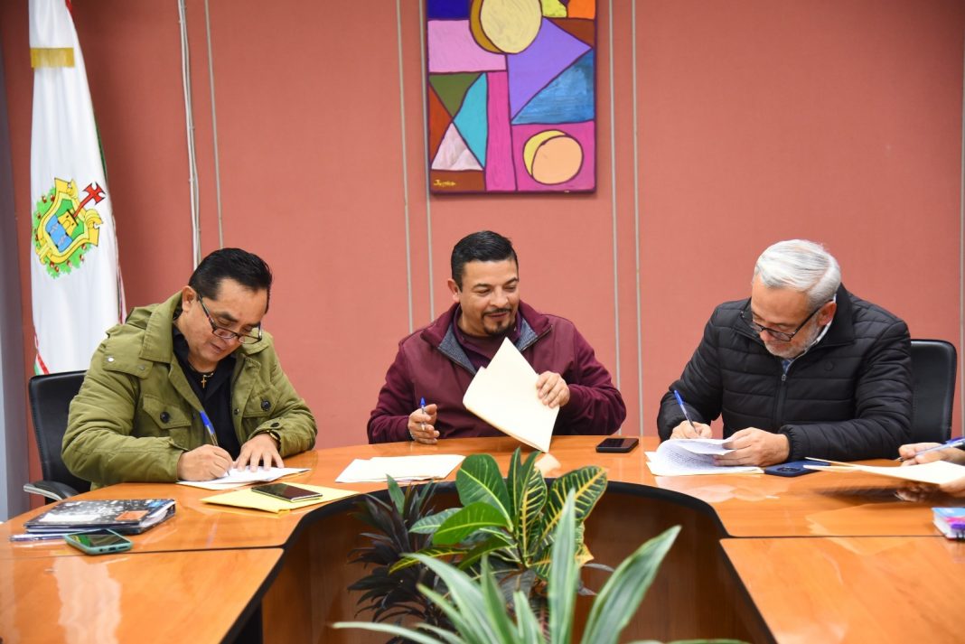 El presidente de la Junta de Coordinación Política (Jucopo) de la LXVI Legislatura, diputado Juan Javier Gómez Cazarín, en nombre del Congreso del Estado de Veracruz, y el secretario general del Sindicato Único de Trabajadores al Servicio del Poder Legislativo (SUTSPL), José de Jesús Rodríguez Hernández, firmaron el acta de la negociación relativa a este año 2023, dando así cumplimiento al compromiso de revisar año con año los salarios y las prestaciones sociales de las y los trabajadores.