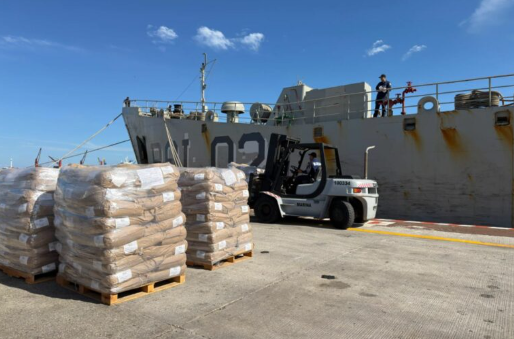La dependencia detalló que la embarcación Papaloapan transporta “alimentos de primera necesidad”, entre los que destacan “leche líquida, productos cárnicos, galletas, frijol, arroz, atún en agua, sardina y aceite vegetal”, así como artículos de higiene personal, con una carga de alrededor de 536 toneladas de esos bienes.
