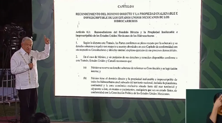 El presidente López Obrador manifestó que es motivo de orgullo haber eliminado del T-MEC el capítulo que entregaba el petróleo mexicano