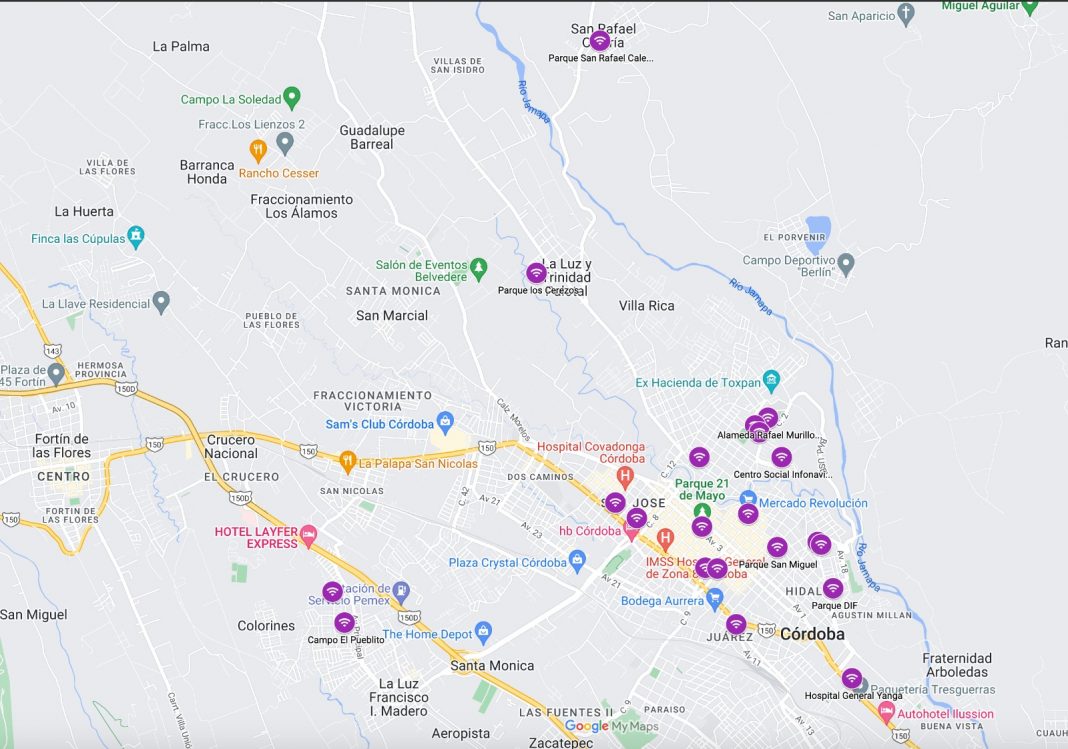 Córdoba, Ver., (23 de junio de 2023). – Como una de las estrategias digitales y apegadas a los lineamientos de Agenda 2030 para el uso de las tecnologías y cerrar la brecha digital, en Córdoba se cuentan con 21 puntos de acceso a wifi libre, por lo cual, el Ayuntamiento a través de la Dirección Digital de Gobierno presenta un mapa con los sitios que se dispone de este servicio en beneficio de los ciudadanos.