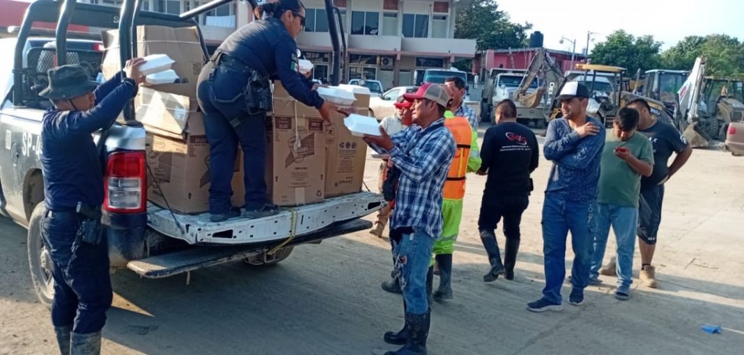 Poza Rica, Ver., domingo 26 de octubre de 2025.- Mediante el Plan Tajín de la Secretaría de Seguridad Pública (SSP), en las últimas 24 horas se han distribuido 2 mil 403 raciones de comida caliente, 220 paquetes alimentarios y 75 kits de limpieza a familias damnificadas por la vaguada y la depresión tropical 90E en la zona norte del estado.