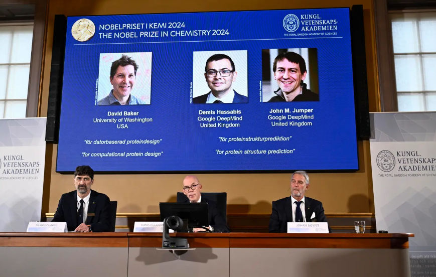 The Royal Swedish Academy of Sciences has decided to award the 2024 #NobelPrize in Chemistry with one half to David Baker “for computational protein design” and the other half jointly to Demis Hassabis and John M. Jumper “for protein structure prediction.” pic.twitter.com/gYrdFFcD4T