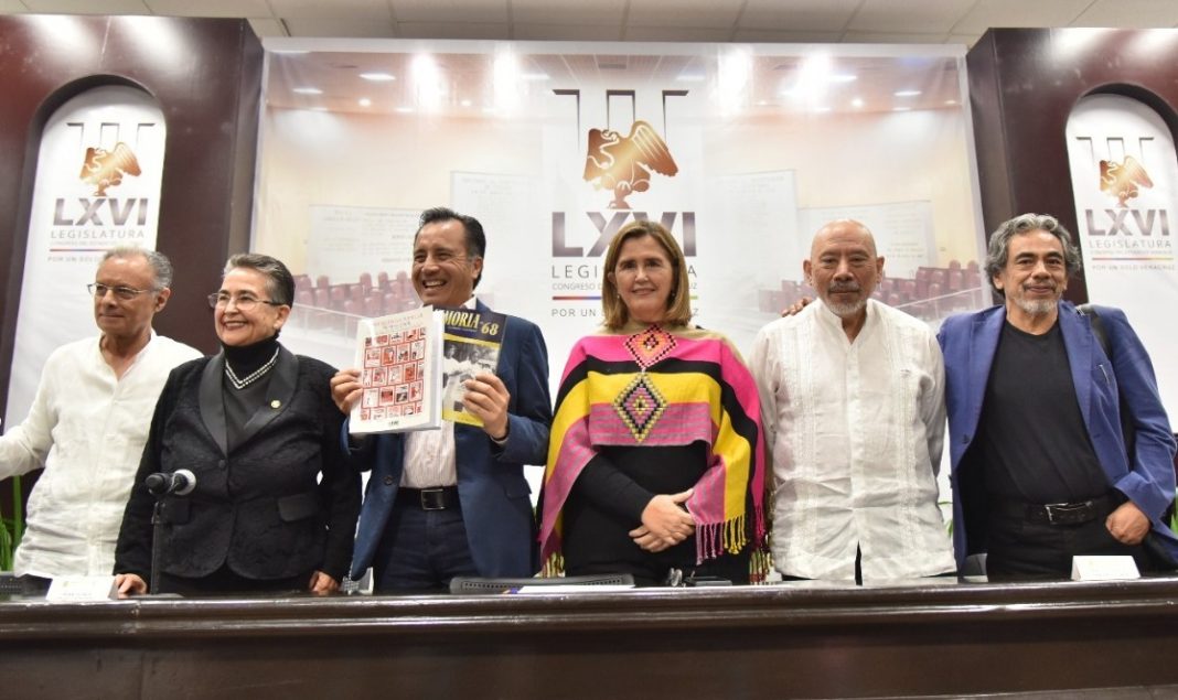 En el auditorio Sebastián Lerdo de Tejada del Congreso del Estado se llevó a cabo la presentación de los libros “Memorias del 68, fotografías y fotogramas” e “Insurgencia Popular, forma es fondo”, coordinados por la senadora de la República por Veracruz, Gloria Sánchez Hernández, y que tuvo como invitado de honor al gobernador del estado, ingeniero Cuitláhuac García Jiménez.