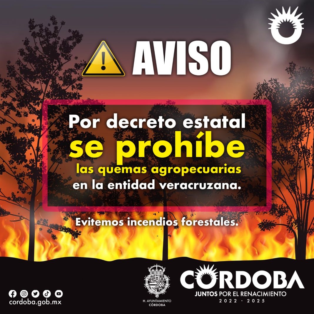 Córdoba, Ver., (21 de junio de 2023). – Ante el Decreto que prohíbe las quemas agropecuarias en la entidad veracruzana, misma que se encuentra publicada en la Gaceta Oficial del Estado, la Unidad Municipal de Protección Civil (UMPC), hace un exhortó a la personas que se dedican a actividades agropecuarias y que deban realizar alguna actividad de este tipo, cumplan con los lineamientos establecidos, a fin de evitar sanciones y a su vez no se ocasione daños a terceros.