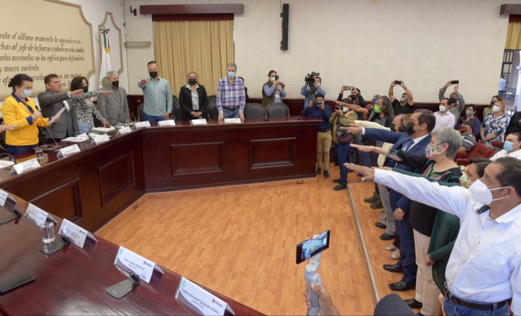 El la Sala del Cabildo, la síndica única, Cecilia Coronel Brizio, tomó la protesta de ley a las regidoras y regidores Aníbal Pacheco López, Helen Sarmiento Jaén, Diego David Florescano Pérez y Martín Victoriano Espinoza Roldán; a los representantes de la Universidad Veracruzana (UV), Laura Guerrero Ortega y Rafael Gómez Rodríguez; del sector comercial, Héctor González Martínez y Miguel Ángel Illescas Bandala; las representantes de la sociedad civil organizada, Blanca Cortina Julio y Zoe Lizbeth Ceballos López, además del representante de Pueblos y Comunidades, Enrique Rodríguez Castillo.