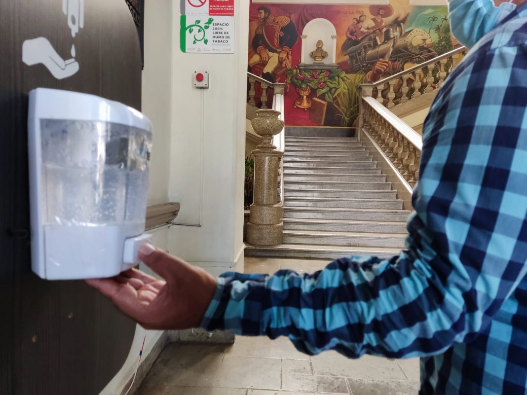 Córdoba, Ver., (6 de julio de 2022). – El Ayuntamiento de Córdoba ha reforzado las medidas preventivas ante el Covid-19 con filtro sanitario al ingreso del Palacio Municipal, como el uso de gel antibacterial, cubrebocas obligatorio, toma de temperatura, de igual manera se han implementado acciones de desinfección en el interior de los espacios de cada área del edificio municipal.