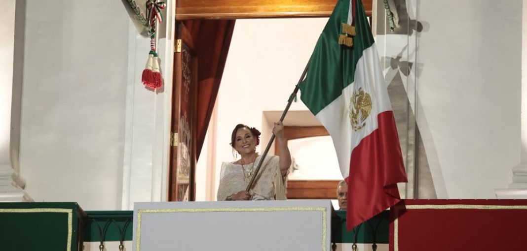 Alrededor de las 23:09 horas, ondeó con solemnidad el Lábaro Patrio y, acompañada por cientos de voces, lanzó los tradicionales ¡Vivas! en conmemoración del 215 aniversario del inicio de la lucha por la libertad y la justicia en México.