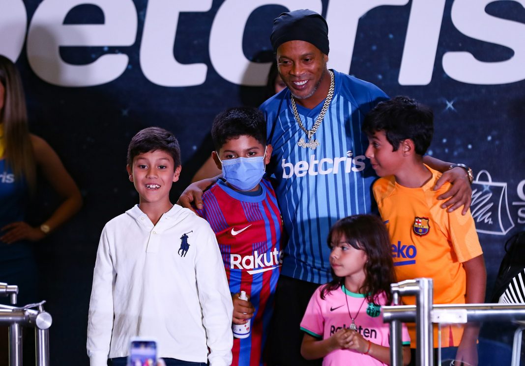 Con dos horas de retraso sobre la hora anunciada, Ronaldinho hizo su aparición ante la algarabía del público, que lo esperaba para verlo en persona y, con suerte, tomarse una foto con el exjugador de la selección de Brasil y de clubes como París Saint-Germain, Barcelona, Milan y Flamengo.