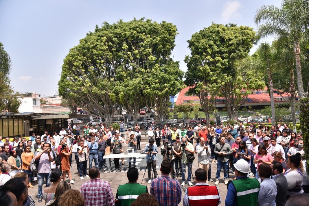 A las 11:00 horas de este 19 de abril y al sonar la alerta sísmica, brigadistas de protección civil del Congreso local evacuaron las áreas de oficinas y espacios cerrados del Palacio Legislativo y condujeron a visitantes, autoridades y plantilla laboral a los puntos de reuniones señalados en la explanada de actos cívicos.