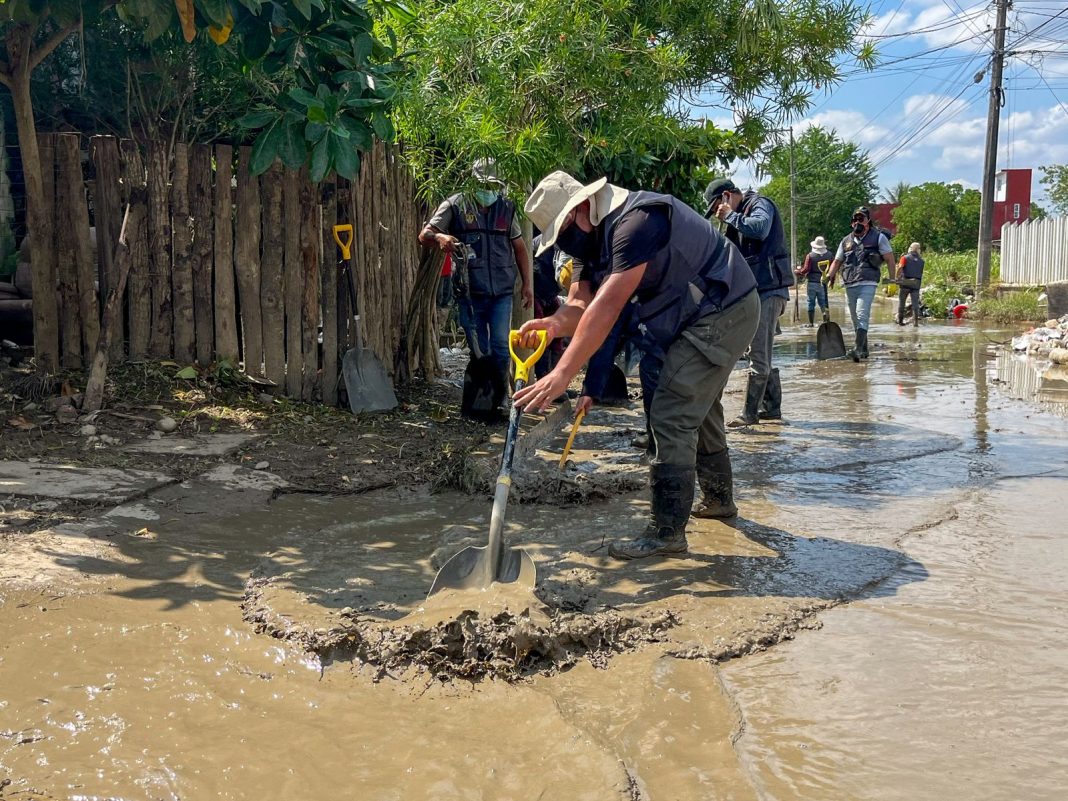 Las brigadas permanecen en la zona realizando labores de limpieza en viviendas, calles y espacios públicos, con el objetivo de restablecer condiciones adecuadas de salubridad y seguridad para la población.