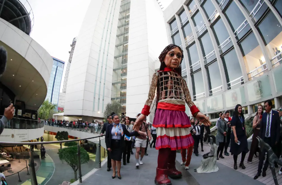 El Senado mexicano recibió a la Pequeña Amal, una marioneta de 3.5 metros de altura que representa a una niña siria refugiada y que se ha convertido en un símbolo de la lucha por los derechos humanos de las personas refugiadas.