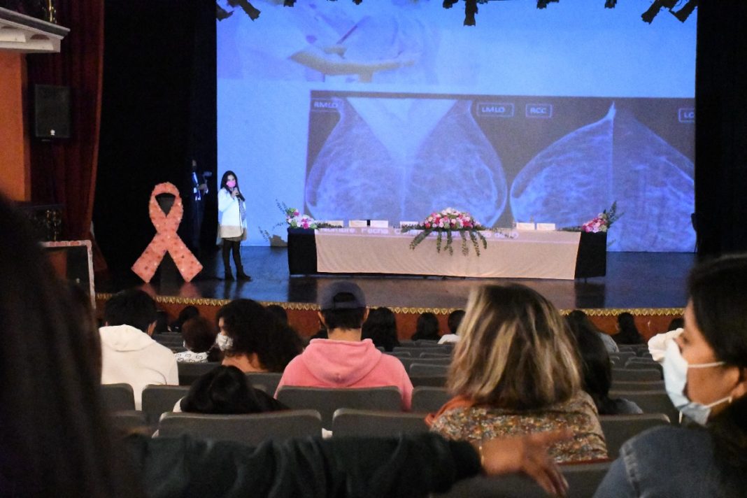 Córdoba, Ver. (19 de octubre de 2022). – Como parte de la conmemoración por el Día Internacional de la Lucha Contra el Cáncer de Mama, la Jurisdicción Sanitaria 6 y la Coordinación de Salud Municipal llevaron a cabo una serie de conferencias con expertos en el Teatro Pedro Díaz, con el objetivo de sensibilizar a las mujeres sobre la importancia de la detección temprana, a fin de mejorar el pronóstico y la supervivencia de los casos de cáncer de mama.