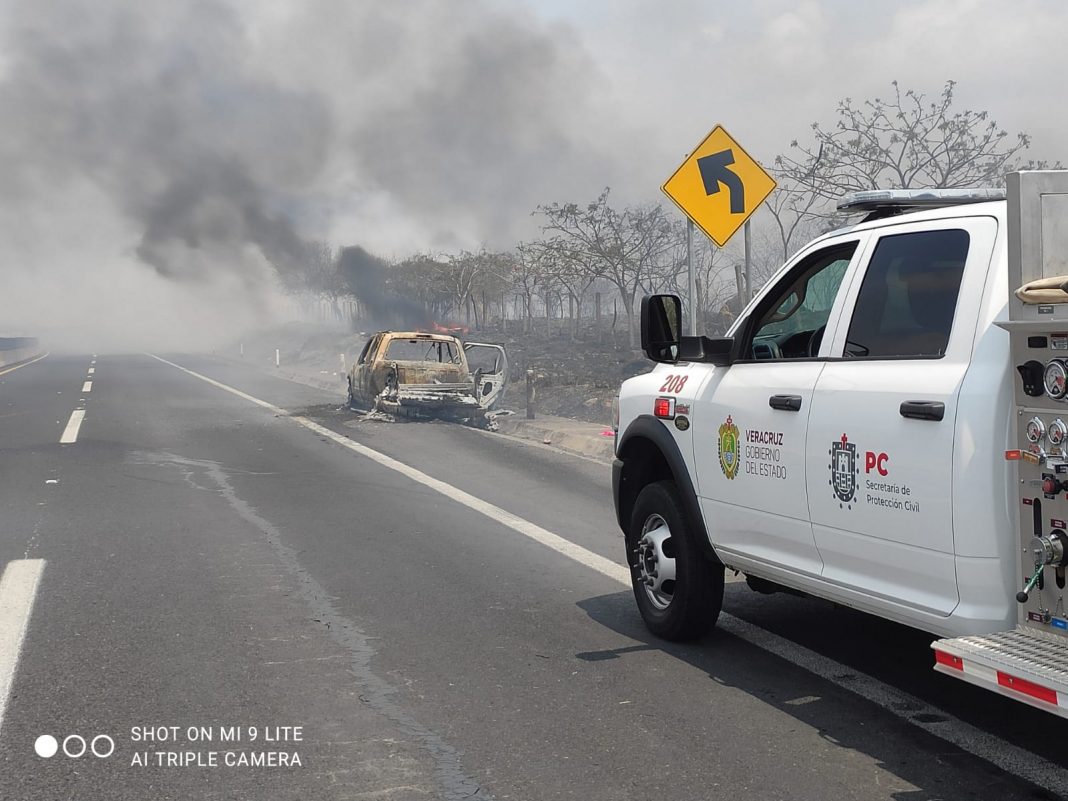 Se reporta la atención a un incendio de vehículo, que a su vez ocasionó un incendio de pastizal a orillas de la carretera estatal Xalapa – Veracruz a la altura de Plan del Río. La visibilidad se ve disminuida, por lo cuál se recomienda precaución al conducir y atender al abanderamiento en el lugar.