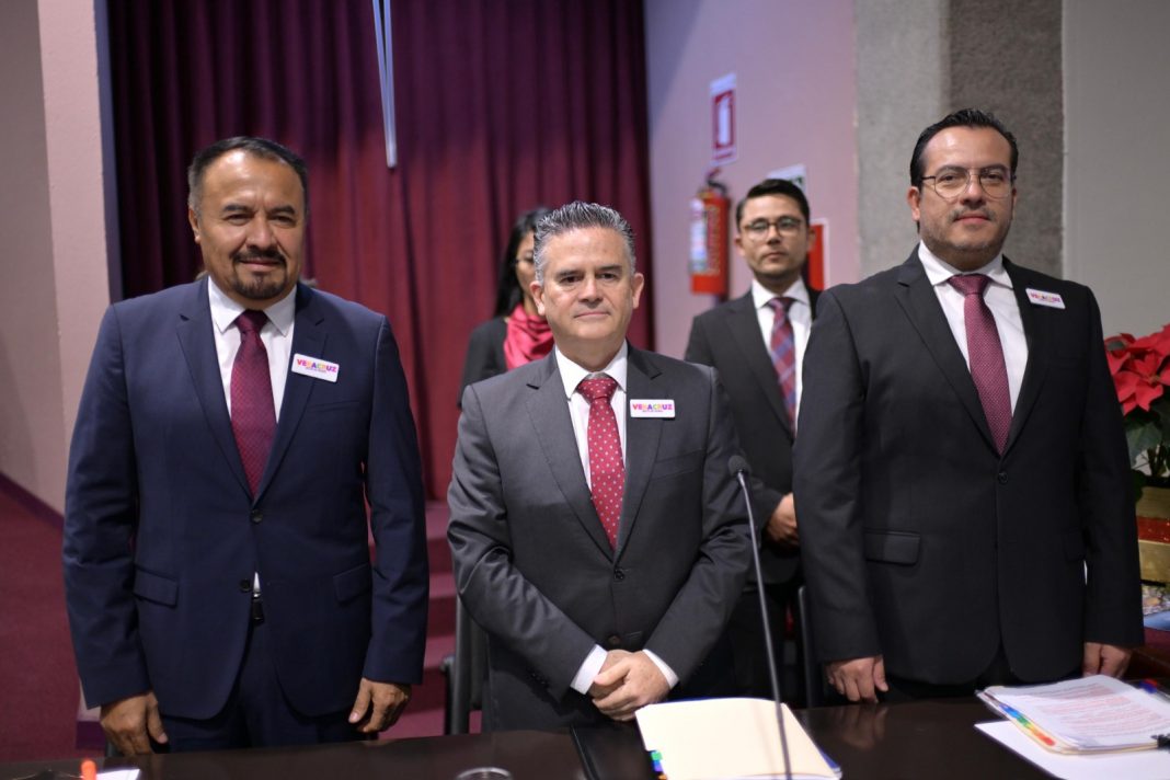 Xalapa, Ver., 19 de noviembre de 2025.- Las diputadas Nallely Mendoza Camarillo, Imelda Garrido Alvarado y Miriam García Guzmán, presidenta, secretaria y vocal respectivamente de la Comisión Permanente de Turismo recibieron la comparecencia del titular de la Secretaría de Turismo (Sectur), Igor Fidel Rojí López, en la glosa del Primer Informe de Gobierno.