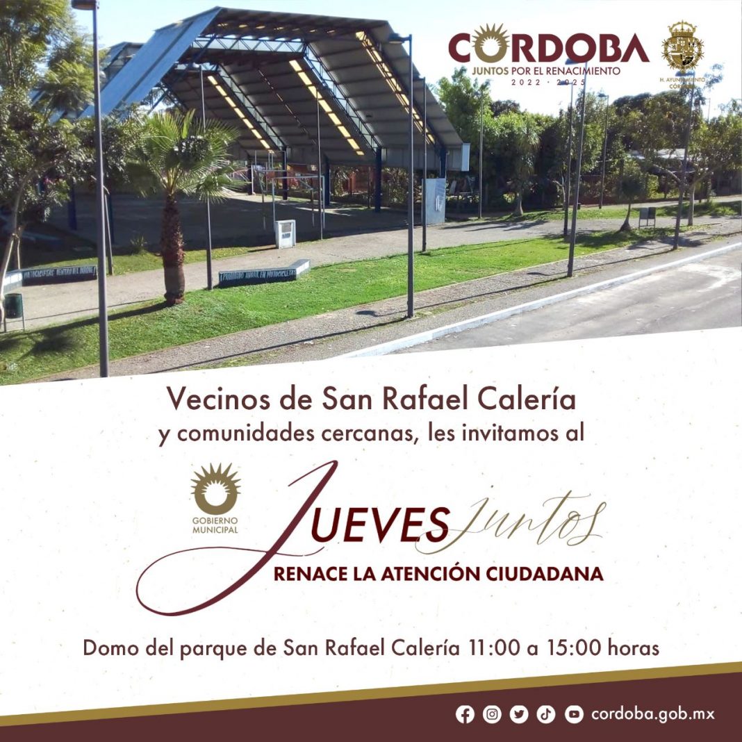 Córdoba, Ver. (15 de noviembre de 2022). – Este 17 de noviembre se realizará la última jornada del programa itinerante «Jueves Renace la Atención Ciudadana», en el domo de la localidad de San Rafael Calería, en donde se atenderá a las comunidades: Cervantes y Lozada, San Bartolo y Rancho Quemado, cubriendo así la última jornada de atención para la zona rural, informó el Director de Desarrollo Social, Daniel Hernández del Ángel.