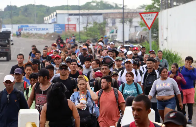 La caravana avanza en medio del flujo migratorio récord en la frontera sur de México, que registró un récord de 782 mil 176 migrantes irregulares en 2023, una subida anual del 77 por ciento.