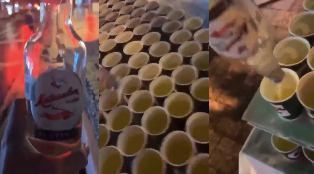 En redes sociales se viralizó el momento en que un hombre en presunto estado de ebriedad vacía media botella de ron en las bebidas rehidratantes dispuestas para los corredores.