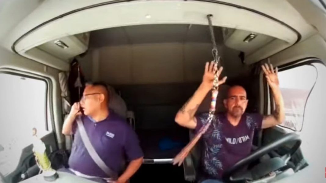 Una cámara dentro del tráiler mostró el momento en que tras ser interceptados uno de los ocupantes exclama “ya nos torcieron“.
