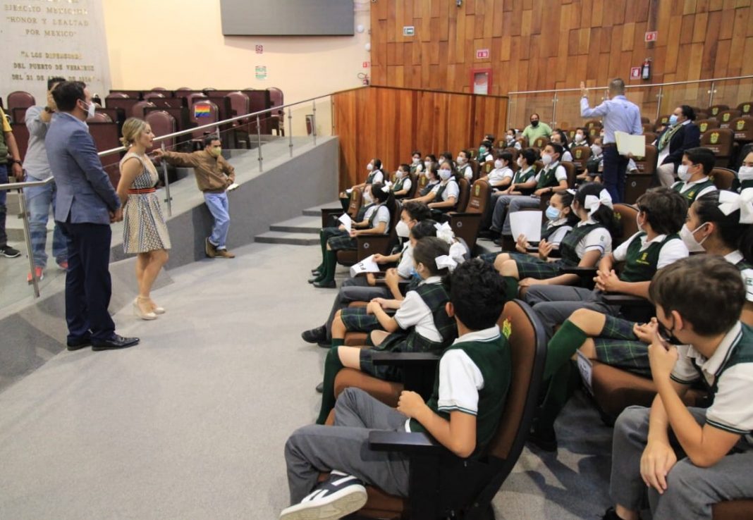 A invitación de la diputada Maribel Ramírez Topete, un grupo de 48 alumnos del Colegio Las Hayas visitó las instalaciones de la sede del Congreso del Estado de Veracruz, donde conocieron las actividades que realizan las y los diputados y participaron en la Semana de la Movilidad y la Seguridad Vial con el taller sobre cultura y educación vial para la niñez.